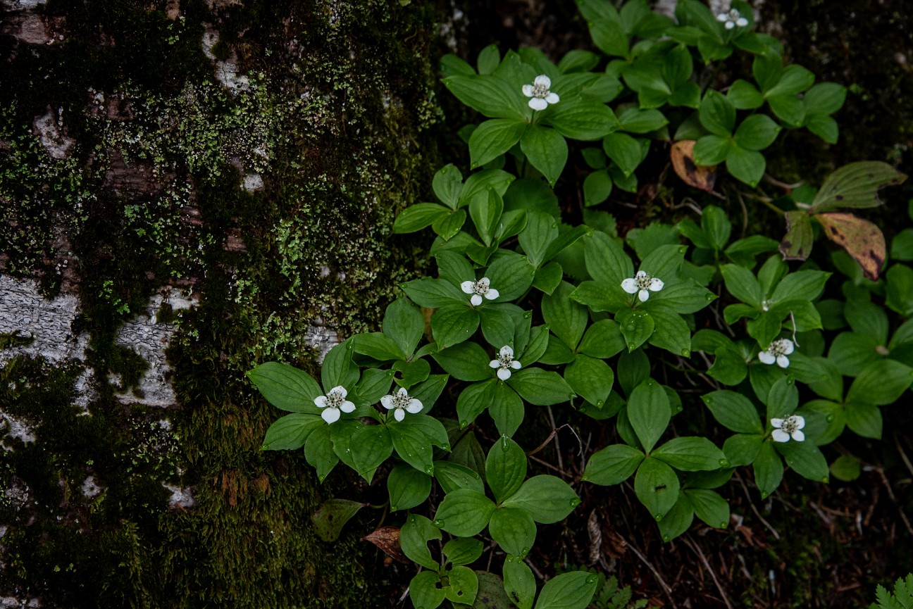 2020-09-02 ゴゼンタチバナ D750 Nikon ネイチャー 写真 夏 6枚の葉の中央に花を咲かせます。 白い花弁のように見えるのは総苞片で、本当の花はその真ん中に集まって咲いています。 総苞片とは花序(花の集まり)を保護する苞葉のこと。 ゴゼンタチバナという気品のある名前は白山の最高峰、御前峰が由来となっています。
